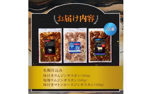札幌仕込み「味付きマトンロースジンギスカン&味付きラム ジンギスカン&塩こうじジンギスカン」3種食べ比べセット