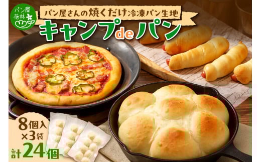 パン屋さんの焼くだけ冷凍パン生地『キャンプdeパン』(60g×8個入り)×3袋