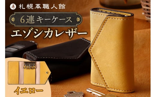 札幌革職人館 6連キーケース エゾシカレザー(蝦夷鹿レザー)【イエロー】