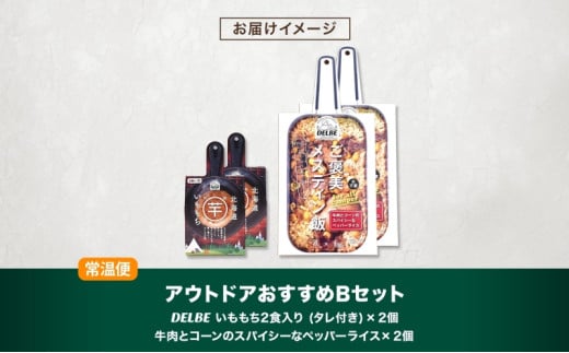アウトドアおすすめBセット 2種 計4個 ご褒美メスティン飯 牛肉とコーンのスパイシーなペッパーライス いももち キャンプ アウトドア メスティン 炊き込みご飯の素 簡単 送料無料 北海道 札幌市