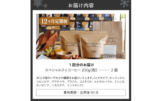 【定期便:12ヶ月】特選二銘柄 スペシャルティコーヒー 200g x 2袋(粉)