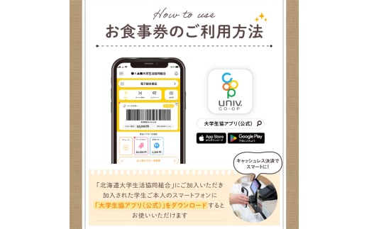 ・北海道大学札幌キャンパスの生協食堂で、生協組合員が利用できるサービスです。