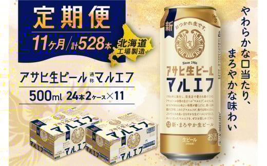 7. 【定期便11ヶ月】アサヒ生ビール≪マルエフ≫<500ml>24缶 2ケース 北海道工場製造 缶ビール ビール マルエフ まろやか 北海道ビール工場製造 ビール定期便 アサヒビール 北海道 札幌市