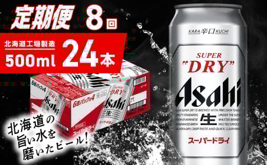7. 【定期便 8ヶ月】アサヒスーパードライ<500ml>24缶 1ケース 北海道工場製造 定期配送 毎月届くビール 北海道 アサヒビール スーパードライ アサヒ 酒 アルコール 生ビール 缶 贈答 北海道 札幌市