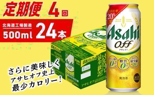【定期便 4ヶ月】アサヒ オフ<500ml>24缶 1ケース 北海道工場製造 缶ビール ビール 糖質ゼロ プリン体ゼロ 人工甘味料ゼロ 北海道ビール工場製造 ビール定期便 アサヒビール 北海道 札幌市