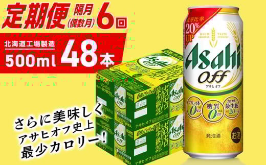 【定期便6回・偶数月発送】アサヒ オフ<500ml>24缶 2ケース 北海道工場製造 缶ビール ビール 糖質ゼロ プリン体ゼロ 人工甘味料ゼロ 北海道ビール工場製造 ビール定期便 アサヒビール 北海道 札幌市