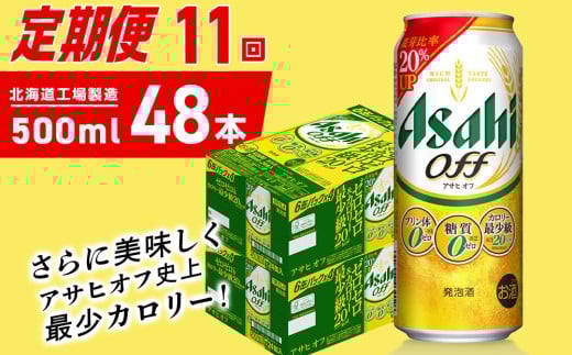 【定期便 11ヶ月】アサヒ オフ<500ml>24缶 2ケース 北海道工場製造 缶ビール ビール 糖質ゼロ プリン体ゼロ 人工甘味料ゼロ 北海道ビール工場製造 ビール定期便 アサヒビール 北海道 札幌市