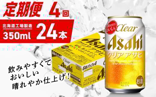 【定期便 4ヶ月】クリアアサヒ<350ml>24缶 1ケース 北海道工場製造 缶ビール ビール クリアアサヒ すっきり うまみ 晴れやか 北海道ビール工場製造 ビール定期便 アサヒビール 北海道 札幌市