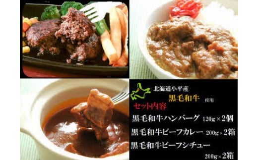 和牛100%ハンバーグ 2個、ビーフカレー 2箱、ビーフシチュー 2箱