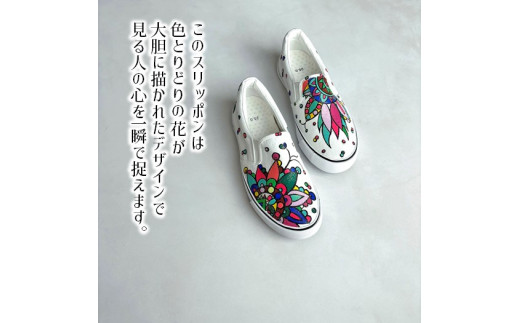 7. 手描きスニーカー「ミラージュ」 スリッポン ワイズ 2E 24.5cm【受注制作】