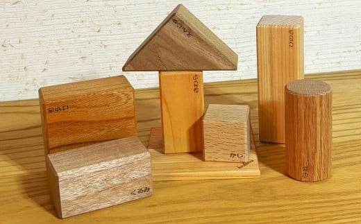 サンドペーパーを使用せずに仕上げた無塗装品の積み木