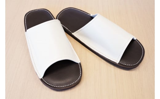 靴職人手作りの本革「スリッパ」 ホワイト×ダークブラウン キッズサイズ ルームシューズ 部屋履き 雑貨 日用品 革 本革 高級 ギフト プレゼント 贈答 白 茶 災害 子ども H066-058