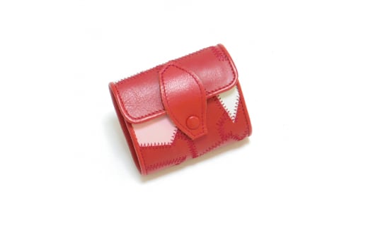 7. 3つ折り財布 革のパッチワーク お札も小銭も入る「コロンとした小さなお財布」赤色【1210097】