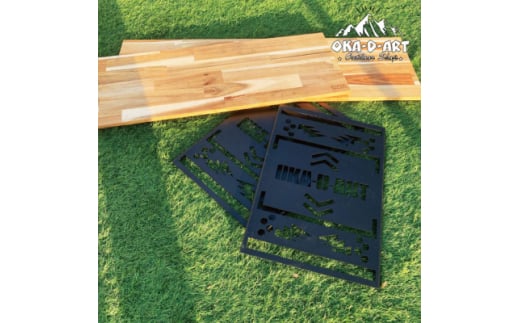アイアンのサイドテーブル部はレーザーにてoka-d-artオリジナルデザインを施しています。簡単に組み立てることが出来るのでアウトドアでも屋内でも御利用できます。