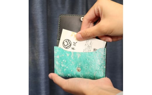 ・京都レザー 名刺入れ 【ターコイズブルー色:漣】[1個]