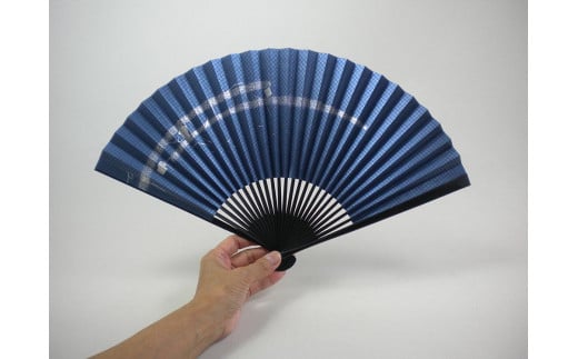 8寸25間 黒染骨 紺地銀箔散らし 紳士用