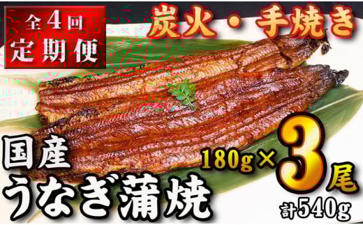 【全4回定期便】 国産うなぎ蒲焼 約180g×3尾・たれ・山椒 【炭火・職人手焼き「和食竜むら」】