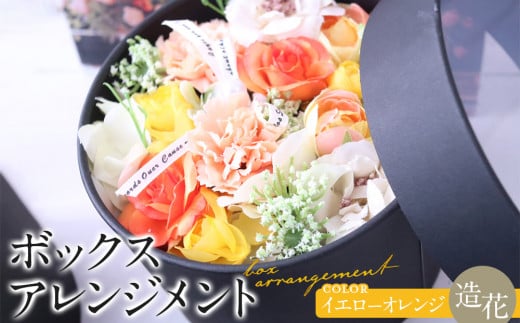 ボックスアレンジメント イエローオレンジ 造花 インテリア ギフト