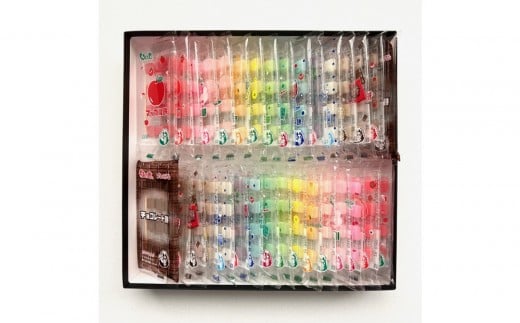 16種類:(アップル餅、小うめ餅、さくらんぼ餅、いちごミルク餅、白桃餅、オレンジジュース餅、パイン餅、シャインマスカット餅、メロンソーダ餅、サイダー餅、グレープ餅、ヨーグルト餅、焦がし生キャラメル餅、チョコ餅、コーラ餅、プレミアムチョコレート餅)