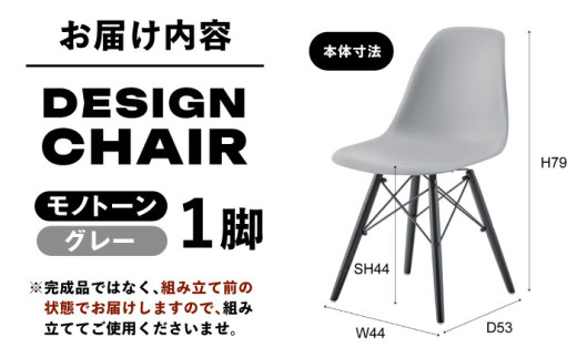 ・イス デザイン 人気 モノトーン グレー 1脚[W44 x D53 x H79 x SH44cm 4.0kg 1脚]
