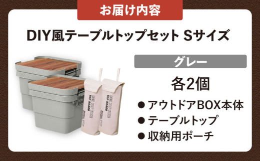 ・アウトドア 収納ケース DIY風テーブルトップセット グレー Sサイズ 2個[30リットル(W40 x D39 x H37cm)1個 トップボード1個 2セット]