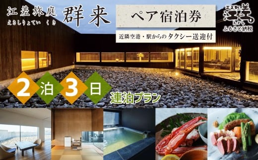 宿泊券[ペア2泊3日・1日2食付・タクシー送迎付]1枚