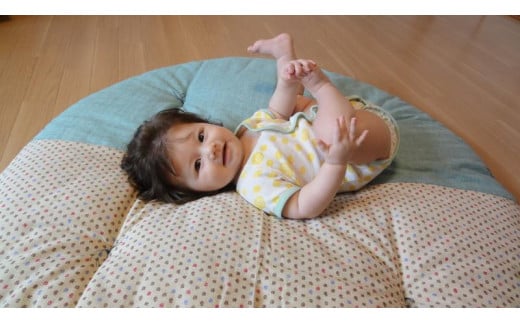 赤ちゃんのお気にいり。大人もゆったり使える、直径1mの丸い座ぶとん。