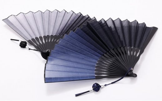 【伊と幸】《白生地の老舗が贈る》霞扇-かすみおうぎ-(紺ぼかし染)