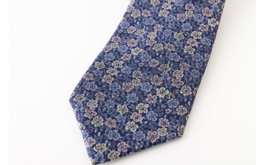 【西陣活性化を応援!】シルク100%西陣織ネクタイ(小花柄・青紫地)
