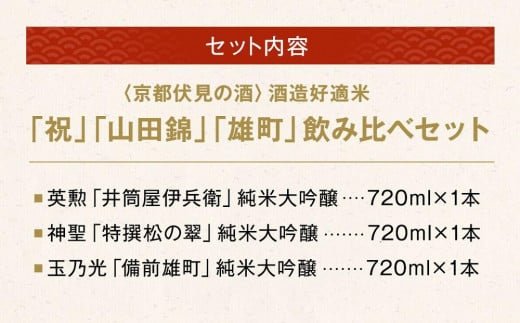 【吟醸酒房 油長】京都伏見の酒 酒造好適米 「祝」「山田錦」「雄町」飲み比べセット[ 京都 伏見 酒房 飲み比べ 純米酒 純米吟醸 人気 おすすめ お酒 日本酒 地酒 ご当地 酒蔵 酒造 ギフト プレゼント お取り寄せ 通販 送料無料 ふるさと納税 ]