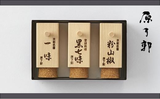 【原了郭】老舗の薬味・黒七味セット(四角3本セット)