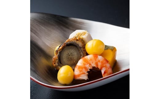 1<先付>長芋(国産)、エリンギ(国産)、椎茸(国産)、いくら(国産)、碾茶(国産)、鰹節、昆布、醤油、味醂、酒、砂糖、食塩(一部に