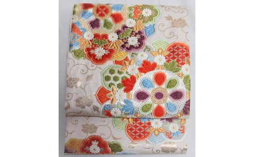【山口成織物】西陣織 白地 袋帯 牡丹唐草地大華文【お仕立付き】