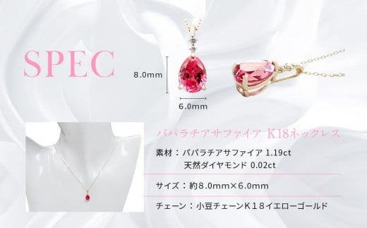 【京セラ】クレサンベール〈パパラチアサファイア・天然ダイヤモンド〉ペンダント【ペアシェイプカット/1.19CT/WPDP2946】