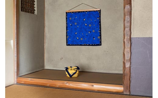 【丸和商業】綿小 風呂敷「UDKCふろしき~生命樹~」ブルー+イエロー2枚セット