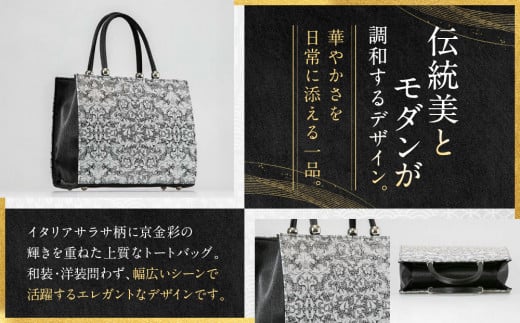 【光映工芸】京都発!特許高蒔絵技法による伝統工芸品 京金彩トートバッグ ≪花更紗柄 黒≫[ 京都 老舗 かばん 高級 人気 おすすめ 金彩友禅 京金彩 金彩加工 和装 フォーマル お取り寄せ 通販 送料無料 ふるさと納税 ]
