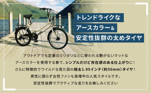 ■フレーム素材:スチール ■タイヤ:20x1.95 ■ライト:LEDライト ■変速:外装 6 段 ■カゴ:ワイヤーバスケット ■サドル最低高70cm