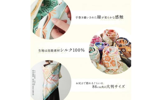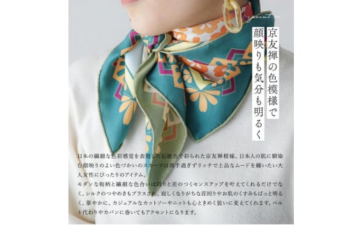 【佐々木染工】 京友禅スカーフ シルク100% <桜七宝 水縹/若緑(グリーン)>