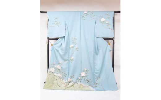 【池内友禅】手描友禅染 訪問着(石楠花に隈笹文)