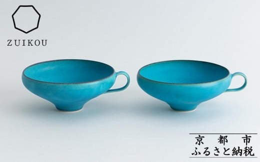 【瑞光窯-ZUIKOU-】スープカップ ペアセット(ターコイズブルー/青)[ 京都 京焼 陶磁器 清水焼 窯元 マグカップ サラダボウル 鉢 180ml 適量サイズ おしゃれ 人気 おすすめ 食器 うつわ 陶器 お取り寄せ 通販 送料無料 ふるさと納税 ]