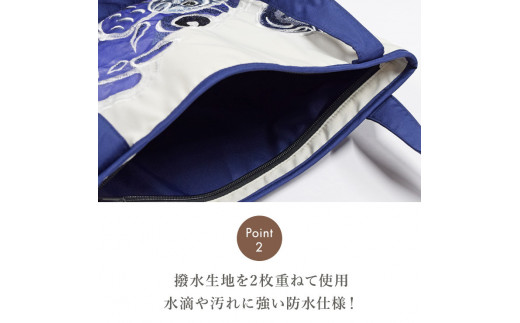 【シノワズリーモダン京都】Ki-yan キーヤン カープカットワーク刺繍 防水・撥水トートバッグ ブルー2[ 京都 日傘ブランド かばん  刺繍 おしゃれ 人気 おすすめ おしゃれ 女性用 ギフト プレゼント お取り寄せ 通販 送料無料 ふるさと納税 ]