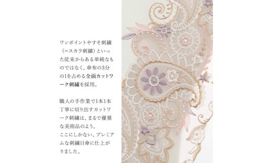 刺繍技術の粋を集めた、繊細で優雅なペイズリー更紗柄の完全遮光日傘