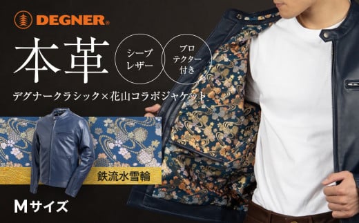 【デグナー】クラシック×花山コラボジャケット 21SJ-14K ネイビー 鉄流水雪輪<Mサイズ>[ 京都 バイクギア ブランド レザー ジャケット 人気 おすすめ 革 牛革 ツーリング ライダー バイカー バイク メーカー ギア パーツ 送料無料 ふるさと納税 ]