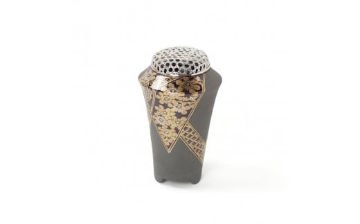 〈香炉〉京焼 金襴黒陶香炉/銀製火屋 香炉灰付/木箱入/大外紙箱入