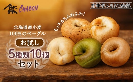 【CHABON】北海道産小麦100%のベーグルお試し5種類10個セット|京都 人気ベーカリー ベーグル おすすめセット [ 人気のベーグル食べ比べ 自家製 焼きたて グルメ 朝食 おやつ ぱん パン 便利 お取り寄せ 通販 送料無料 ふるさと納税 ]