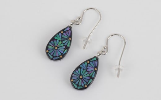 【嵯峩螺鈿野村】押合菊グリーンピアス|京都 老舗 伝統工芸 漆器 ジュエリー[ 京都 老舗 伝統工芸 工芸品 アクセサリー ジュエリー ファッション 漆 人気 おすすめ 職人 お取り寄せ 通販 送料無料 ふるさと納税 ]