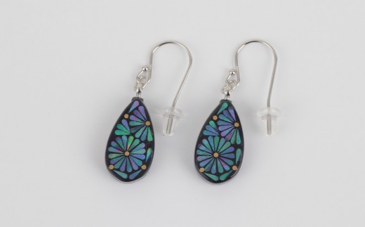 夜光貝で花びらを一枚ずつ丁寧に張り合わせ隙間なく菊を咲かせた螺鈿ピアス