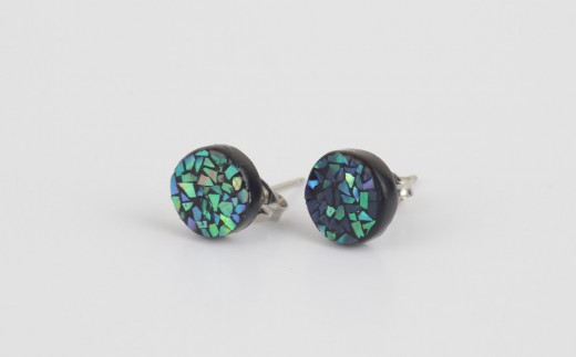 小さく割った貝の破片を丁寧に敷き詰めた、貝の自然さを感じさせて光り輝くピアス