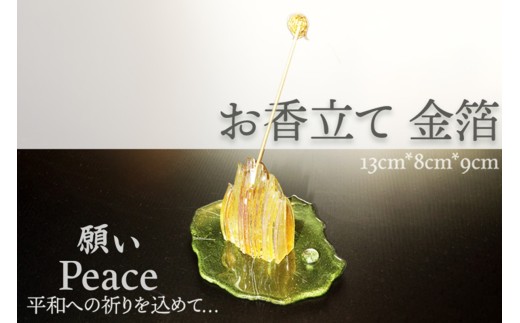 お香立て・金箔「PEACE・願い」ガラス工芸品 透明ガラス 一点もの ガラス SV00004