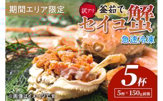 【期間エリア限定!訳あり】厳選!絶品! 急速冷凍 釜茹で セイコ蟹5杯 YK00399